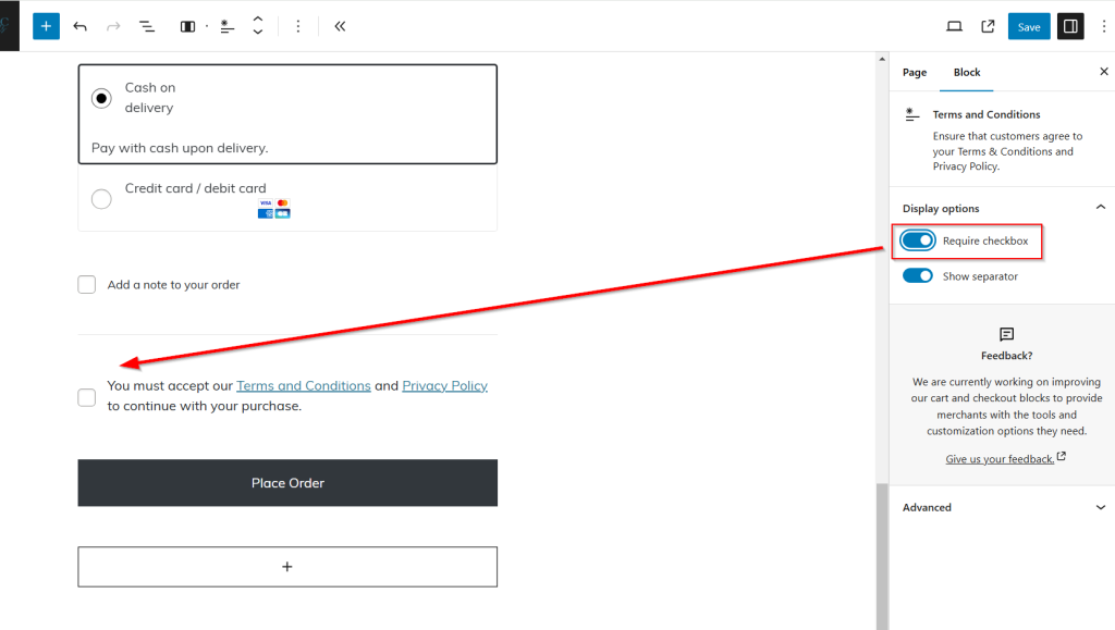 Now when you reload the checkout page you will get checkbox to accept terms and privacy policy before placing the order.